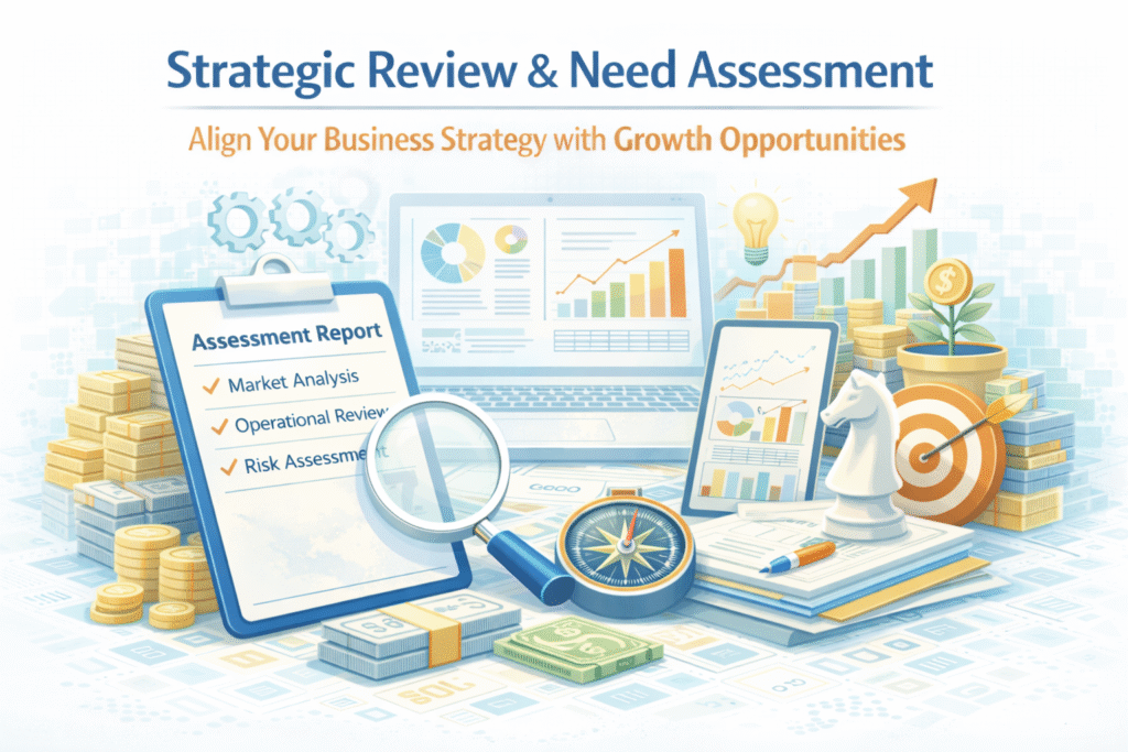 Every successful organization begins with a clear understanding of where it stands today and where it needs to go. Our Strategic Review & Need Assessment service helps businesses evaluate their current operations, identify gaps, and build a roadmap for sustainable growth.